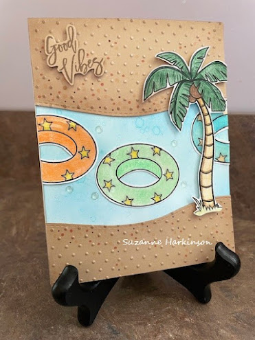 says, "It won't be long and the summer heat will begin to take its toll so I have a few suggestions. If you want to 'beat the heat', use a dry embossing technique for our challenge. But if you can't 'beat it', we suggest you 'join it' by switching to a heat embossing technique - or use both for fun. If embossing techniques aren't for you, your last chance to play along is to use a stencil on your project. You must use at least one of the above YOU-nique Techniques on your project... it's your choice."